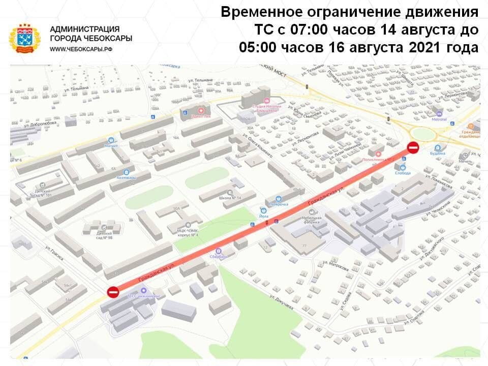 На выходных ул. Гражданскую в Чебоксарах перекроют