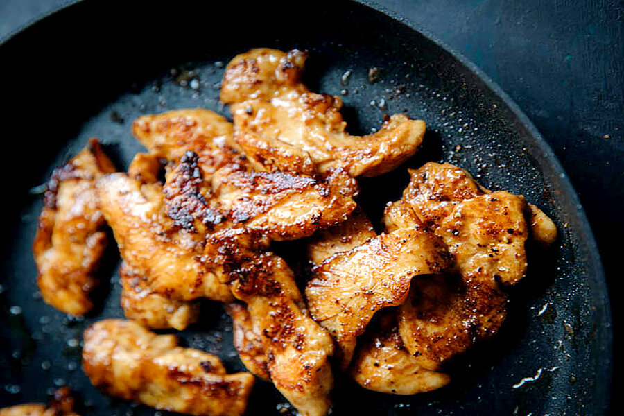 Ингредиенты: 200 г – куриной грудки ½ ч.л – свежемолотого черного перца 1 ст.л – растительного масла маринад 1 ст.л – устричного соуса 1 ст.л – светлого соевого соуса 2 ч.л – кукурузного крахмала 4 см – имбиря (нарезать) ½ ч.л – свежемолотого черного перца соль по вкусу для подачи листья салата нарезанные соломкой огурец и морковь Приготовление: Подавайте на листе салата с соломкой огурца и моркови. Приятного аппетита! Если вам понравилось, поставьте 👍, чтобы я мог понимать предпочтения участников канала и быть более полезным.