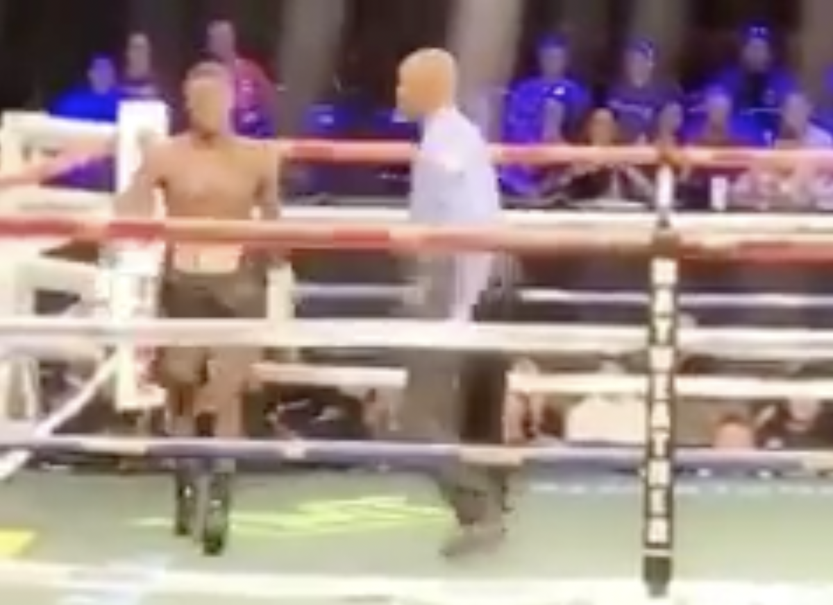 Боксер оказался в нокдауне и незамедлительно покинул ринг, несмотря на отсчет рефери (видео)