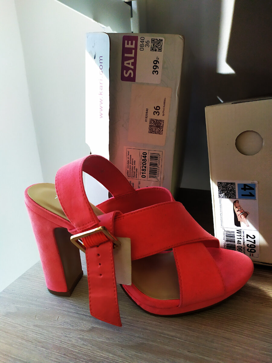 Я не знаю, как в других регионах, но в нашем магазине обуви KARI сейчас просто шикарная распродажа летней женской обуви на любой вкус. Хочешь босоножки, хочешь сандалии или шлёпанцы от 399 рублей? Конечно большинство моделей 2019-20 года, но актуальность они и сегодня не потеряли. В этом обзоре хочу предложить вашему вниманию хорошую и недорогую обувь, которая сейчас есть в продаже KARI города Абинск. Одни из дешёвых босоножек, что я заметила в KARI. Замшевые розовые босоножки на высоком устойчивом каблуке. Цена 399 рублей. Сиреневые босоножки на высоком устойчивом каблуке. Цена 599 рублей. Многоцветные шлёпанцы на мягкой подошве. Цена 799 рублей. Синие сандалии на толстой подошве с декоративными блестящими пятаками. Цена 599 рублей. Бежевые сандалии через палец на тонкой подошве. Цена 399 рублей. Бежевые лакированные босоножки на среднем каблуке. Цена 199 рублей. Чёрные сандалии с широкой резинкой на подъёме. Цена 799 рублей. Бежевые босоножки на пробковой платформе. Цена 999 рублей