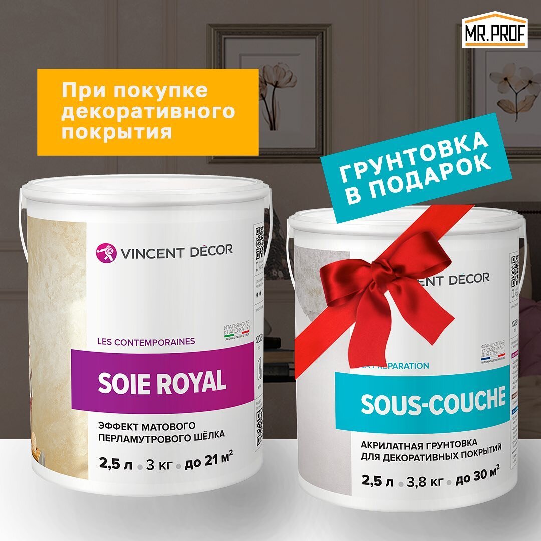 Поэтому мы запускаем специальное предложение 🎁 При покупке декоративной штукатурки Soie Royal получите грунтовку Sous-couche В ПОДАРОК!🎁 Soie Royal с эффектом матового перламутрового шелка - одна из наиболее полюбившихся фактур среди наших клиентов. 🥰 Её гладкость, легкость, струящаяся структура и вместе с тем аристократичная сдержанность неизменно притягивают взгляды. ☝🏻Но дело не только во визуальной привлекательности материала. Soie Royal очень прост в нанесении, с ним справится даже новичок. Грунтовка Sous-couche - отлично подходит в качестве основы под декоративную штукатурку Soie Royal, 👍т.к. ее можно заколеровать в цвет покрытия, что добавит плотности, насыщенности и более качественной цветопередачи. Не упустите возможность получить 2 продукта по цене одного. Переходите на сайт misterprof.ru и закажите свое идеальное покрытие.