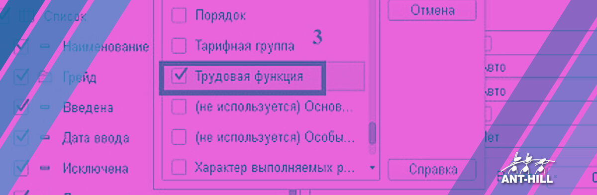 Для того, чтобы увидеть, заполнены ли трудовые функции и коды ОКЗ для всех должностей, необходимо настроить форму. Данная настройка будет полезна, если у вас много должностей, и заполнение этих реквизитов выполняется частями либо разными сотрудниками. Для этого нужно нажать кнопку «Еще» - «Изменить форму». В открывшемся окне нужно поставить флажок «Ссылка» (п.1), нажать «Добавить поля» (п.2), в появившемся окне найти поле «Трудовая функция», поставить флажок (п.3) и нажать «ОК» (п.4), в настройке формы также нажать «ОК» (п.5). Для добавления кода ОКЗ необходимо выполнить аналогичные действия, т.е. добавить еще раз ссылку на трудовую функцию. После чего встать мышкой на эту ссылку и добавить поле «Код по ОКЗ» (выполнить по порядку действия п. 1-5). После добавления нужных полей в настройках формы, используя флажки, вы можете убрать ненужные графы. Также с помощью стрелочек на форме можно переместить элементы для удобства. В результате выполненной настройки мы можем оперативно определит