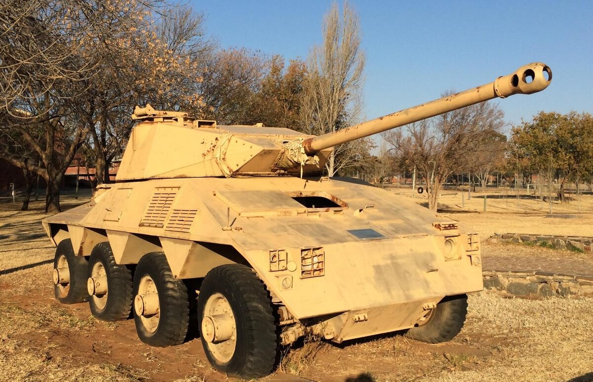 Колёсных танков, а точнее, БТРов с танковой пушкой, в мире создано не так много. Самые известные из этих машин, это конечно, итальянский Чентауро и южноафриканский Ройкат. А вот машины, которые предшествовали этим разработкам, достаточно, малоизвестны. В этой статье пойдёт речь машине которая стала предшественницей Рокайту. Необходимость "колесного танка" была для ЮАР осознана, наверное, еще во Вторую Мировую, — просторы Южной Африки просто идеальны для такого рода техники. Ну, и где-то во второй половине 60-х они пошли по дороге, в конце которой появился знаменитый (среди узкого круга ценителей) колесный танк Rooikat. Но путь к нему был, наверное, еще интереснее результата. Вот могли бы вы опознать в данном восьмиколесном броневике — Alvis FV603 Saracen?? Нет? А придется… Дело в том, что южноафриканские конструкторы взяли английскую машину "за основу", развернули ее мотором назад, добавили куда-то в середину четвертую ось, — и взгромоздили сверху башню с мощным орудием. Ну, его-то вы