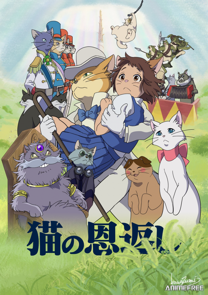 Однажды Хару возвращалась из школы с подругой по имени Хироми и заметила красивого тёмно-серого кота с золотой цепочкой на шее, несущего в зубах золотистую коробочку, перевязанную алой ленточкой. Удивлённые подруги стали за ним наблюдать, и увидели, как кот, переходя дорогу, нечаянно выронил коробочку и пытается её поднять, не замечая несущийся на него грузовик. Хару спасла кота, вынеся его с проезжей части перед затормозившим грузовиком. Кот, встав на задние лапы и отряхнувшись, как человек, вежливо поблагодарил её за спасение, и, улыбнувшись, низко поклонился. Ночью Хару проснулась от кошачьего мяуканья, вышла на улицу и увидела длинную процессию кошек, идущих на задних лапах; некоторые из кошек несли фонари и музыкальные инструменты. В середине процессии находилась тачка с лежанкой, на которой везли огромного пушистого кота с большим синим сапфиром в золотой оправе на лбу. По обе стороны от тачки шли кот в мантии и пенсне и кошка со свитком в лапах. Кот в мантии и пенсне подозвал Ха
