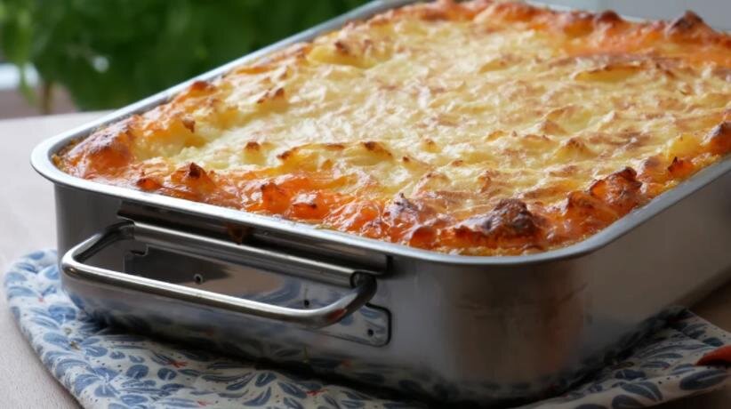 Засыпаем овощи или картофель на дно формы (ее смазываем оливковым маслом)
