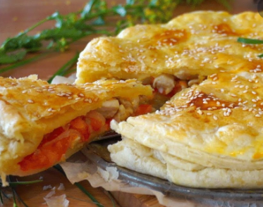 6️⃣ Наносим на пирог желтки со сливками, для красивой румяной корочки. Посыпаем кунжутом по желанию.