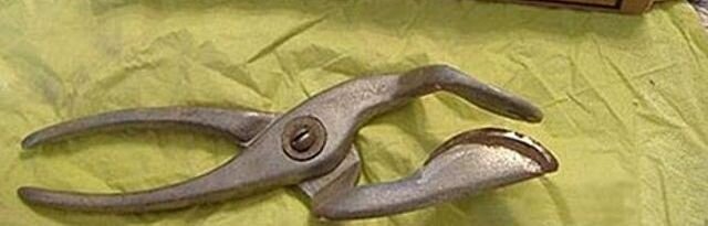 Сначала предположил, что это орехокол или что подобное. Потом предположил, что инструмент сломан (картинка одна, не хватает изображения с других ракурсов). Потом начал искать. Я нашел оригинал фотографии, по которой без лишних слов станет понятно, что это: