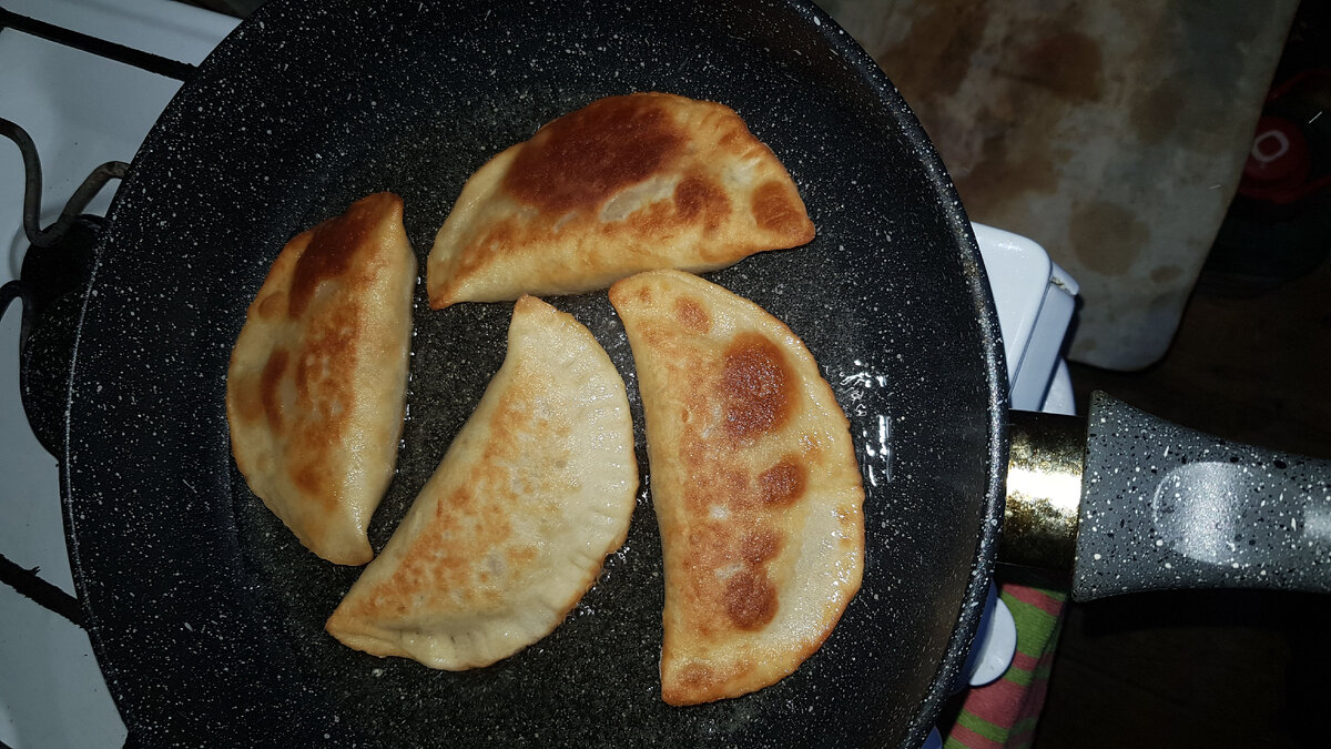Всем привет, уважаемые подписчики!!! Сегодня расскажу вам, как легко и быстро приготовить сочные, вкусные, домашние Чебуреки, которые в секунду съедаются! Итак начнём : Сначала будем делать тесто, так как ему надо будет постоять 10-15 минут, а мы как раз за это сделаем начинку. Просеиваем муку, добавляем в неё соль и воду, тщательно перемешиваем пока наше тесто не станет гладким и эластичным (тесто должно получиться плотным), накрываем его пищевой плёнкой и даём отдохнуть минут 15. А сами в это время начинаем готовить начинку для наших Чебуреков. Берём фарш, солим, перчим, добавляем лук, пару столовых ложек холодной воды (так наши чебуреки будут сочнее), затем всё хорошенько перемешиваем. Теперь можно приступать к процесу лепки))) Делим тесто на кусочки, каждый раскатываем в тонкий круг, на одну половинку кладём начинку тонким слоем и накрываем сверху второй половинкой. Края я защипываю вилкой, так наши чебуреки получаются с красивой каёмочкой))) Из этого количества теста у меня получ