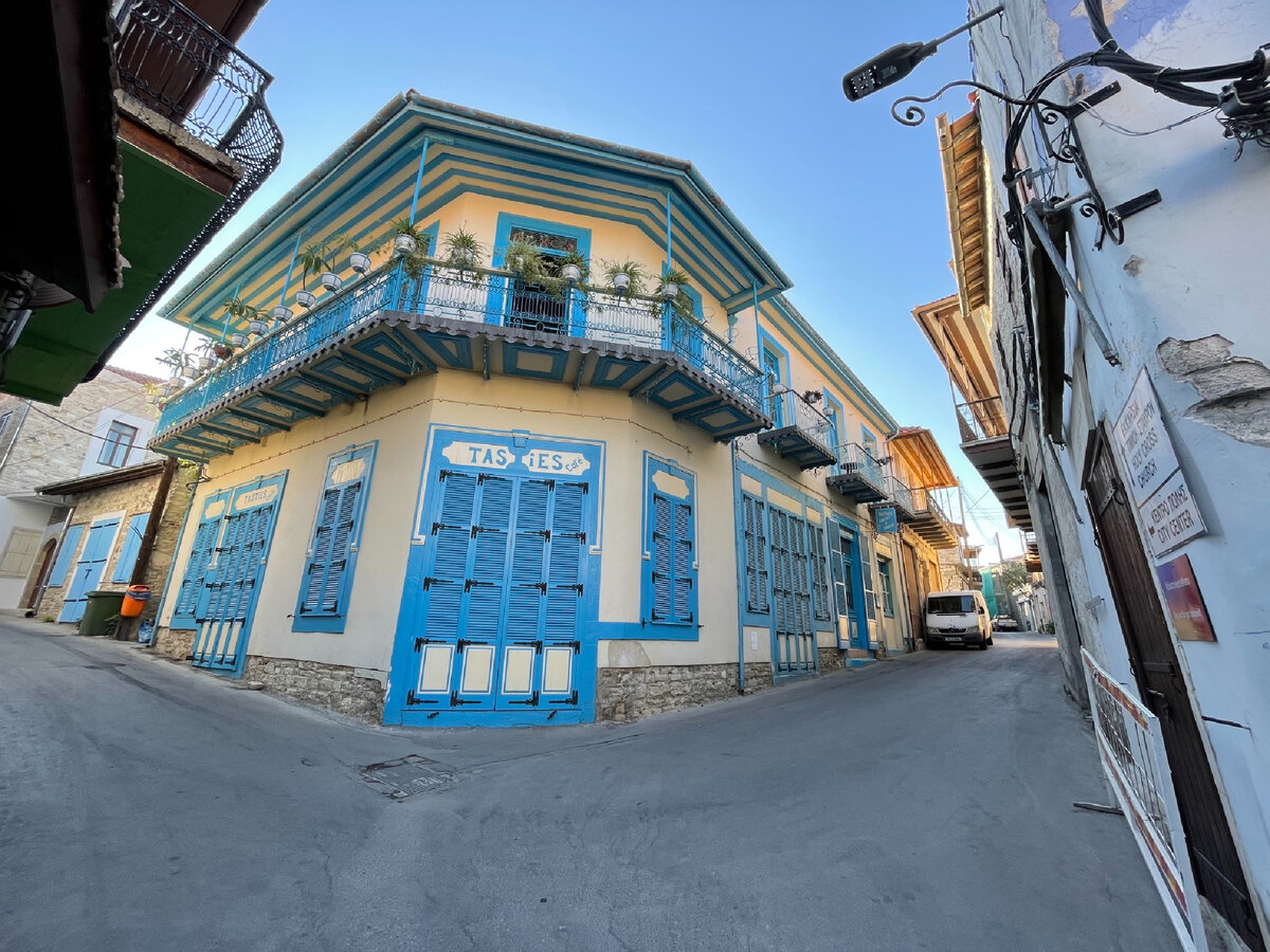 Пожалуй, это синий дом – самый знаменитый дом в Лефкаре. То что он знаменит я сделал вывод по сувенирным магнитам. Почти на каждом вот это кафе TASTIES. Наверное, из-за строго локдауна кафе все еще закрыто.