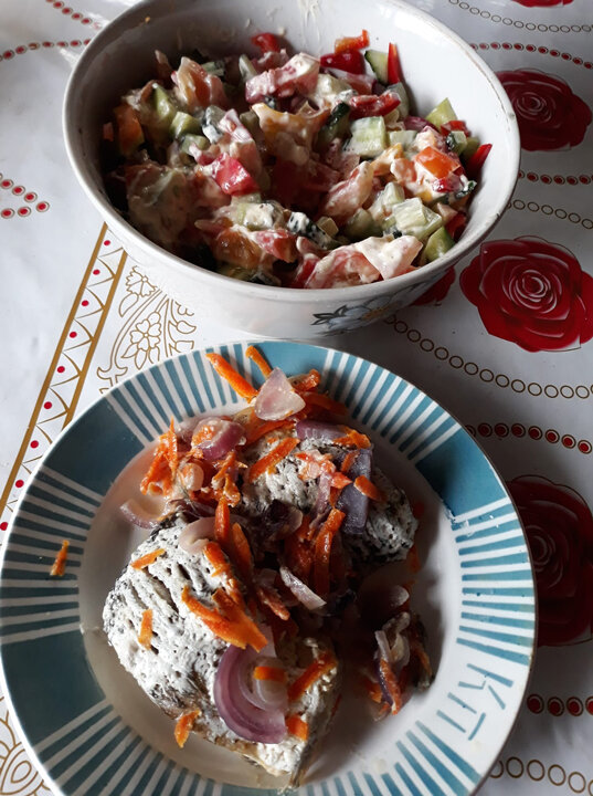 Сегодня на ужин приготовила рыбу сметанном соусе по рецепту участницы нашей группы. Правда у меня не скумбрия, а караси. Живём на даче, поэтому едим речную рыбку, которую муж ловит. Карасей почистила, помыла и нарезала кусками. Для соуса взяла 2 ложки сметаны, соль, немного чёрного перца, чуть розмарина. Нарезала лук и натёрла морковку, и половину отправила на дно сковородки с небольшим количеством оливкового масла. Куски рыбы обмакнула в соус и отправила на сковородку. Сверху полила остатком соуса, добавила оставшиеся лук и морковь. На маленьком огне томила 30 минут под крышкой. Очень вкусно получилось! Спасибо за рецепт :) Больше общения и рецептов - в группе "Жизнь с диабетом" в Facebook! Рецепт на странице в Facebook Автор рецепта - Наталья Володарская