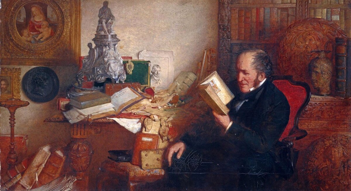 Пояснение: Эта строчка стоит отдельного замечания. Ведь сей рассказ С.П. Жихаревым списан с сатирического описания некоего мистера Олдбока из романа В. Скотта «Антикварий». Сравните: «На огромном старомодном дубовом столе грудой лежали бумаги, пергаменты, книги, всякие мелочи и безделушки, мало чем примечательные, кроме ржавчины и древности, о которой эта ржавчина свидетельствовала... Ловелу была показана увесистая дубинка с железным шипом на конце. Её недавно нашли в поле, на земле Монкбарнаса, неподалеку от старинного кладбища. Дубинка эта чрезвычайно похожа на те палки, которые берут с собой гайлэндские жнецы, когда раз в год спускаются с гор. Однако в виду её своеобразной формы мистер Олдбок был весьма склонен считать, что это — одна из тех палиц...»