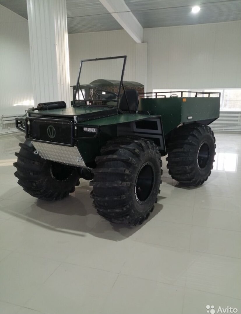 Говоря не дорогой, я в прямом смысле имею ввиду, что почти каждый желающий может себе его приобрести. На фоне цен два, три и более миллионов за модель этот приятно выигрывает, пусть немного лишая комфорта за отсутствуем крыши. Это пятая модель от ООО «вездеход», основное отличие от предыдущих моделей, является узел перелома шкворневого типа, это как у всем известного трактора Т150. в этом узле установлены конические подшипники с манжета и с четырёх сторон, которые препятствуют попаданию влаги, пыли и грязи. Масленка для шприцевание так же имеется. -Длина данного вездехода 3700см -Ширина 1950см -Высота 1650см -Вес 510 кг -Толщина железа рамы 2,5 мм КПП и двигатель установлена от ВАЗа десятки, что облегчает поиск и цену запчастей, привод шруз-крестовина, цепь отсутсвует! Что тоже плюс. В качестве грутнозацепов всеми любимые, так называемые «ободрыши». Он конечно выглядит по простому но и цена за данный экземпляр всего 220 000₽, согласитесь ее так много! Для охоты и рыбалки отл
