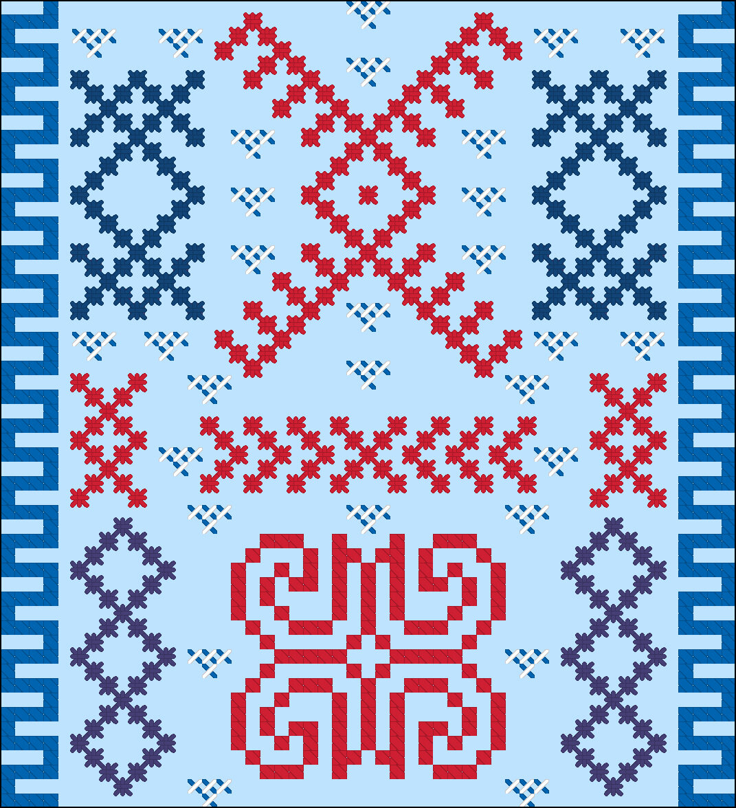 Схема для вышивки Раппорт № 2 для вышивки вставки на наволочку подушки. Размеры 9 на 10 см. Используются орнаменты русских рун: Дождь, Равновесие, Восстановление Поток, Защита и Свадьба. Расчет производился для канвы «Аида « № 14 и ниток «Гамма». Схема подойдет для тех, кто дружит с водной стихией. Формула – в потоке безопасно и гармонично происходит очищение, восстановление и омоложение. Вышивка сейчас в работе, планируемый размер вышивки 9 на 50 см. для наволочки 50 на 70 см. Стежки: крест в 4 нити, болгарский крест в 2 нити. Её скрин-шот находится в папке «Авторские схемы» на нашей страничке в контакте. Ссылка на страничку: https://vk.com/club200877411. Юлия