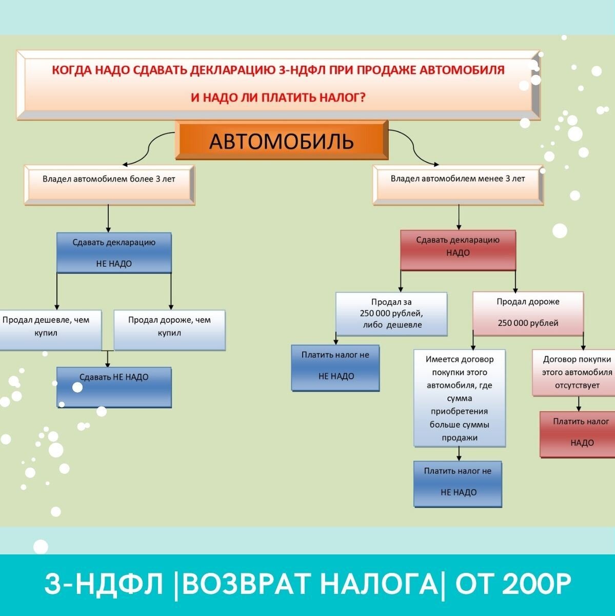 Физические лица обязаны подавать декларацию и оплачивать налог при продаже автомобиля🚘, который находился в собственности менее 3 лет. Согласно пп. 2 п. 2 ст. 220 НК РФ вместо получения налогового вычета в соответствии с пп. 1 указанного пункта налогоплательщик вправе уменьшить сумму своих облагаемых налогом доходов на сумму фактически произведенных им и документально подтвержденных расходов, связанных с приобретением этого же автомобиля. То есть, чтобы сократить сумму доходов от продажи автомобиля, можно: ✅уменьшить ее на сумму налогового вычета, но не более 250 000 рублей; ✅уменьшить ее на сумму фактически произведенных и документально подтвержденных расходов, связанных с приобретением этого же автомобиля, посредством представления налоговой декларации в налоговый орган по месту жительства. Другими словами, налогообложению подлежит не вся сумма дохода от продажи автомобиля, а только разница между доходом, полученным налогоплательщиком, и расходами на приобретение этого авто