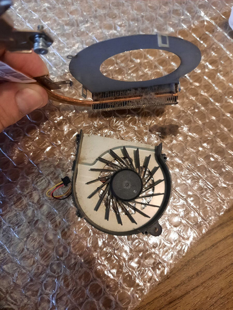 Долго я ждал этого сравнения, и наконец время пришло. Принесли в ремонт ноутбук, хотя какой тут ремонт - его разобрали, заменили термопасту, а собрать обратно по каким-то непонятным причинам не смогли. Так или иначе, мне предстояло собрать ноутбук и переставить систему. Дёрнул меня чёрт проверить состояние термопасты, пока ноут был разобран. Она действительно была свежая, под теплораспределительной крышкой находился процессор с кодовым названием SR0DN, это говорит нам о том, что перед нами Core I3 2го поколения. С Intel Core I3 2го поколения я начал изучать компьютерную тематику, но то были десктопные процы, мобильных я в руках не держал. Посмотрим, на что они способны в 2021-22 годах. И пока охлаждение у меня в руках, разберем кулер Сомнительный результат для чистки, но не для суждений мне его дали. Всё очищаем, наносим новую термопасту и собираем. Здесь ничего интересного для меня уже нет - это типовой ноутбук 2009-2014х годов, если кому нужна инструкция по разбору таких машин, я ос