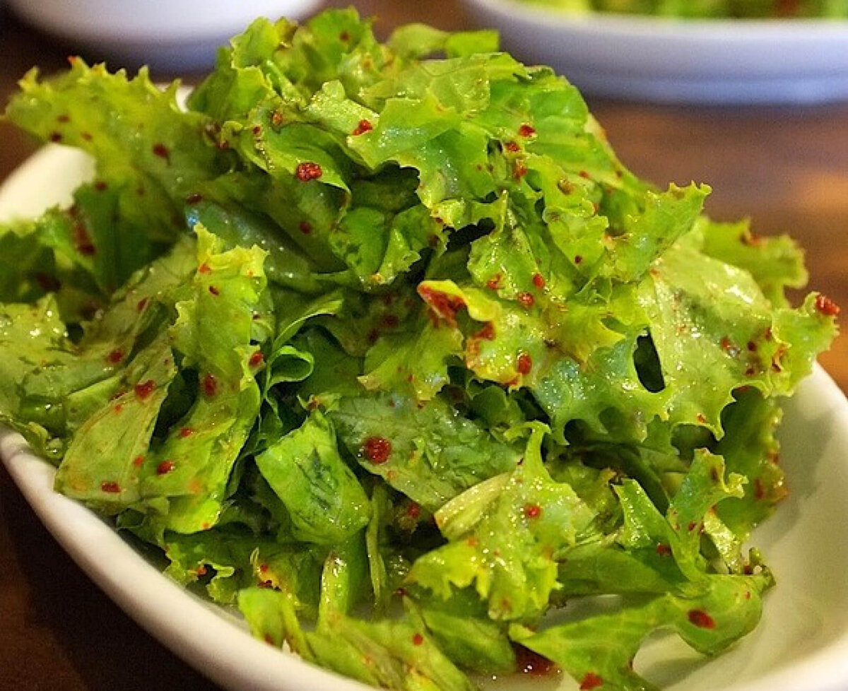 Дорогие друзья и подписчики нашего канала! Спасибо Вам, что Вы у нас есть и всегда заходите в гости и ставите нам лайки, и пишете нам добрые комментарии! Всегда рады новым подписчикам и друзьям! Все-таки корейские, китайские и японские блюда все больше входят в наш повседневный рацион. Больше всего, конечно, мы любим есть корейские салатики. Из моркови, из огурцов и зеленого салата в различных вариациях. Сегодня расскажем, как приготовить вкусно зеленый салат листовой. Кстати, салат лучше всего брать салаты латук, айсберг или фриллис. Нам понадобиться: Как приготовить: Салат промыть, удалить прожилки и нашинковать полосками шириной 2,5 см. Сложить в глубокую миску, посолить, перемешать и оставить на 30 минут для просаливания (салат после этого будет мягким и хрупким). Затем промыть и отжать влагу. Отдельно подсушить в духовке красный острый перец и смолоть в порошок. Приготовить соус для салата, перемешав измельченный красный перец, черный молотый перец, ароматное масло, сахар и соевы