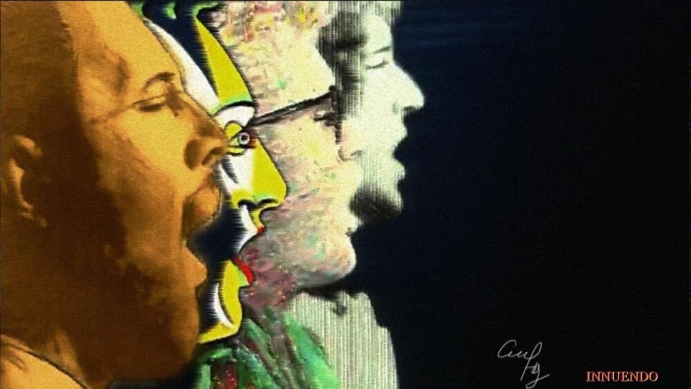 Для сингла Innuendo было создано очень сложное (и технически, и для восприятия) музыкальное видео. Участники группы появляются только в виде иллюстраций, взятых из более ранних музыкальных клипов Queen (таких как Miracle, Scandal, Breakthru, Invisible Man, I Want It All и кадров из “Live на стадион Уэмбли 1986”). Я уже писала, что происходящее на экране снято в стиле фильма «1984» (двухминутки ненависти).