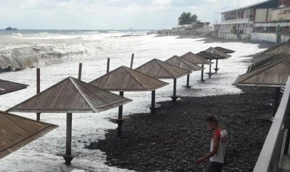 Вот уже неделю всё Черноморское побережье штормит. А часть ещё и заливает. Но так как сейчас самый разгар сезон, туристы уезжать по домам не торопятся.
