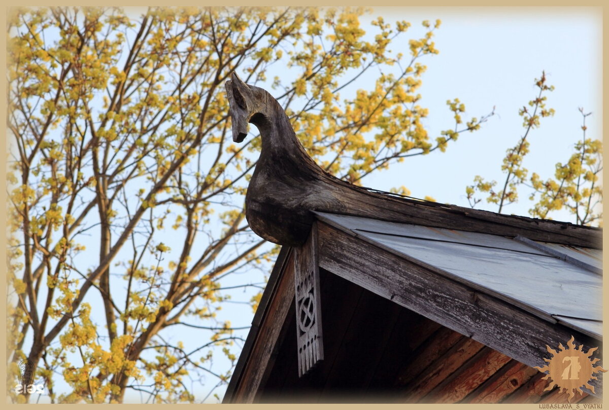 Конь, как в греческой, египетской, римской мифологии - знак устремления. Но только русский мужик догадался посадить его на крышу, уподобляя свой дом под ним колеснице. Ни Запад и ни Восток, взятый вместе с Египтом, выдумать подобного не могли, хоть бы тысячу раз повторили себя своей культурой обратно. Это чистая черта скифии с мистерией вечного кочевья. <Я еду к тебе, в твои лона и пастбища>, - говорит наш мужик, запрокидывая голову конька в небо. С. А. Есенин, 1918, Ключи Марии Наша отчизна велика, её обширная территория обусловила разнообразие природы, традиций, одежды, архитектуры. Так, деревянные строения на одном конце державы, могут значительно отличаться от строений на другом ее конце, как узорами и украсами, так и внешней отделкой. Но одна деталь при этом смогла объединить большинство жилых построек славян. Если на уровне обывателя познакомится с азами традиционного деревянного зодчества, то мы узнаем, что главенствующая деталь любого жилища - охлупень. Так называют бревно, зак