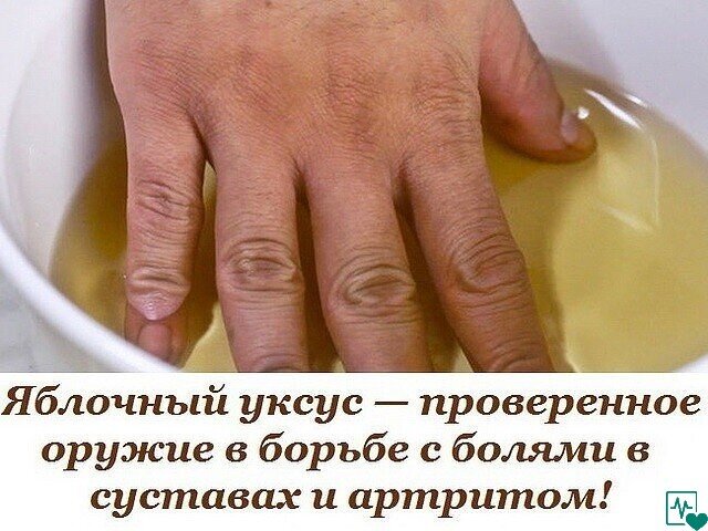 ✔ ПОЛЕЗНЫЕ СОВЕТЫ : Сохраните, чтобы не потерять. СОВЕТ 1 : Яблочный уксус — проверенное оружие в борьбе с болями в суставах и артритом! Боль в суставах весьма неприятна, и она сильно мешает справляться с работой или домашними обязанностями. У некоторых людей такая боль появляется после долгого трудового дня и проходит после полноценного отдыха. Но этот тип боли также может иметь хронический характер, связанный с заболеваниями суставов, например артритом. Если ты страдаешь от болей в суставах, то прекрасно знаешь, что обычные лекарства дают лишь небольшое облегчение. Лучший способ уменьшения болей и симптомов артрита — изменение образа жизни, включая диеты. Также можно обратиться к средствам народной медицины. Одним из них является яблочный уксус. Способы использования яблочного уксуса при боли в суставах 1. Ванночки. Смешай 1 ст. яблочного уксуса с 6 ст. воды и замочи руки или ноги в этой ванночке. Если тебя беспокоят боли в шее или другой части тела, приложи к очагу боли компресс.