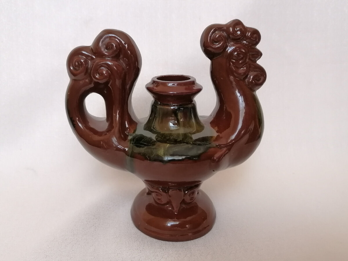Всем здравствуйте. Я уже писала о чайнике-петушке и масленке-курочке. Настала пора показать подсвечник, тоже на птичью тему. Я им усиленно пользуюсь - у нас зимой иногда бывает отключение электричества, из-за сильных ветров, хотя летом тоже задувает, но зимой как-то особо ощущается и отключение света и неудобства с этим связанные. В этом подсвечнике у меня всегда стоит свеча, на случай непредвиденного обрыва электропроводов. А на днях у меня случился «приступ Золушки», и я, наводя порядки – нашла его спрятанным - до зимы то еще далеко. Отмыла, отскоблила потекший воск, теперь не стыдно и показать. Подсвечник в виде петушка, обливная керамика. Высотой 15 см. Как раз для зимних темных вечеров - удобный и устойчивый. Даже не могу вспомнить, ни где покупала, ни в какое время, скорее всего получила в подарок, потому что я всегда покупаю предметы парные, а уж подсвечники обязательно, только два. У меня такое ощущение, то он у меня был всегда. Предполагаю, что это Белоруссия или Украина. Но