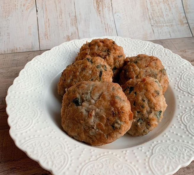 Лепим котлетки, обваливаем в рисовой муке и обжариваем на сковороде с маслом до образования корочки.
