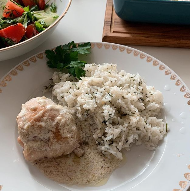 Приготовление лучше начать с курицы, а затем, пока курица будет томиться в духовке, приготовить рис.