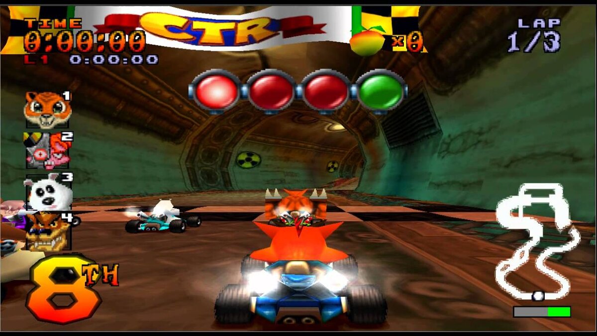 Всем привет.Сегодня у нас обзор замечательной мультяшной гонки-Сrash Team Racing.В свое время на эту игру было "убито" огромное количество времени,причем и на одиночную компанию,и на кооператив с разделением экрана.Итак,что же такого интересного в Сrash Team Racing? Первое,чем встречает нас игра-яркая,мультяшная графика.В те далекие годы такое угловатое 3D казалось верхом графических возможностей.Пестрые,местами сумасшедшие в своем построении уровни запоминались своей проработкой и разнообразием.Снег,пирамиды,канализация,мрачный замок и так далее-каждый уровень был тщательно проработан графически и технически.Везде присутствовали различные препятствия на трассе,движущиеся обьекты и различные секреты и срезки. Все это плавно подводит нас к главной составляющей любых гонок-геймплею.А здесь он на высоте.Главное,что выделяет эту игру,это возможность навредить сопернику.Но и у него есть возможность испортить вам гонку.На высокой сложности гонка превращается в выживание,поскольку на экране т