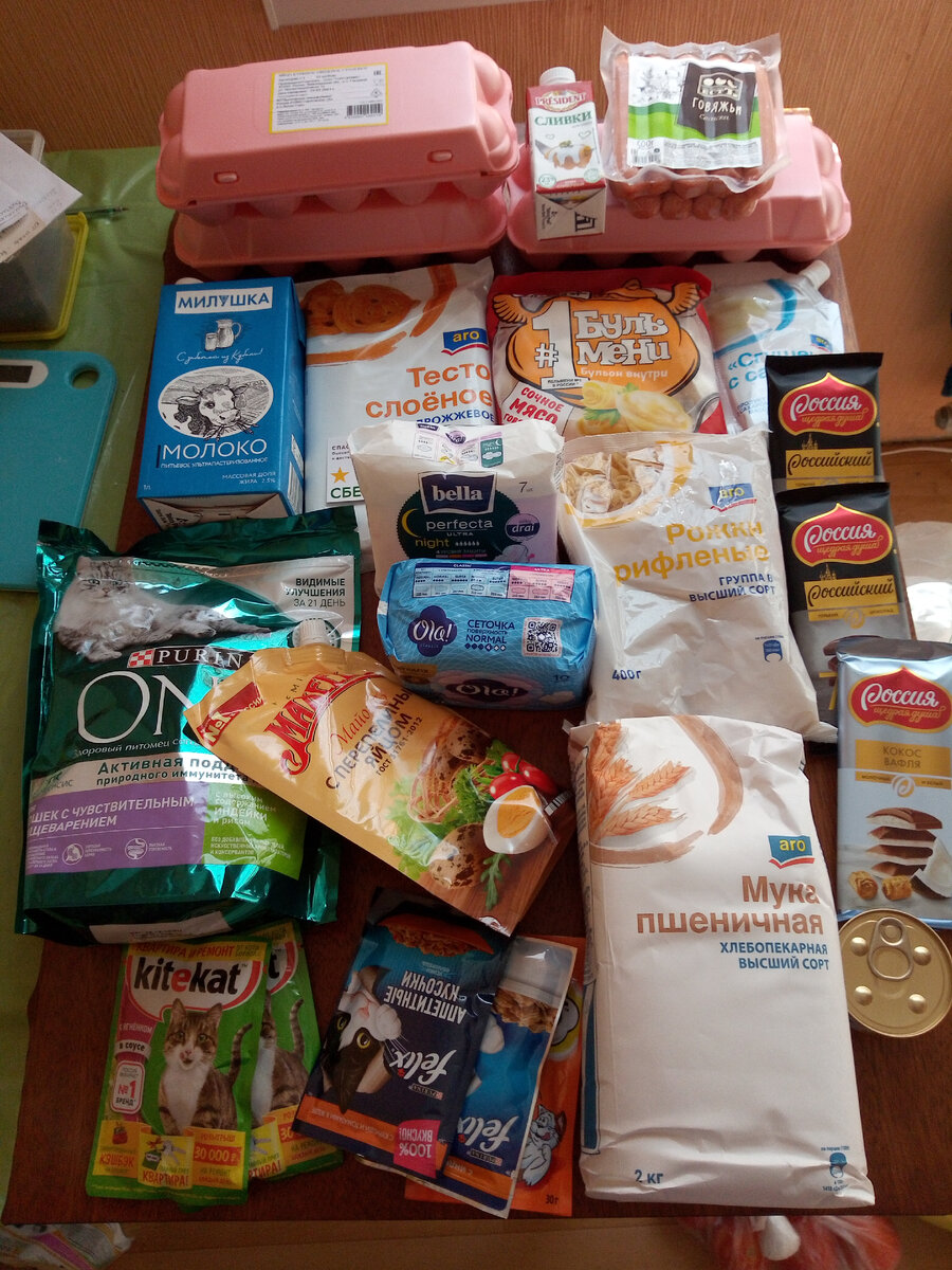 27.07.21 Время покупать и еще с утра я сделала заказ. Конечно, не без того, что можно отложить, не купить. Каждый раз хочу начать питаться правильно с вечера, но утром набираю не того=) Вот такой набор привезли мне из Метро: Обошлась покупка в 1714 рублей: Овощи, фрукты Лимоны взяла для приготовления полезной воды (по рассказам в интернете). По вкусу неплохо: на 1,5 литра 1 небольшой лимон. И стандартно - овощи, фрукты. Бакалея Мука этой торговой марки мне не особо нравится - имеется запах бытовой химии (видимо, условия хранения какие-то не очень верные), а также свои качества она раскрывает так себе. Но и с готовым вариантом не все так гладно. Тесто подвело: оно не румянится, и не очень подходит под характеристику "слоеное". Съедобно, даже вкусно, но визуального удовольствия не получилось. Яйца, молочка Снова взяла сливки, уже другие. Мороженое получилось вкусным и дешевле покупного. Решила повторить. Вредности Как-то так.. Мясо Это вместо него. Что-то надоело что-то г