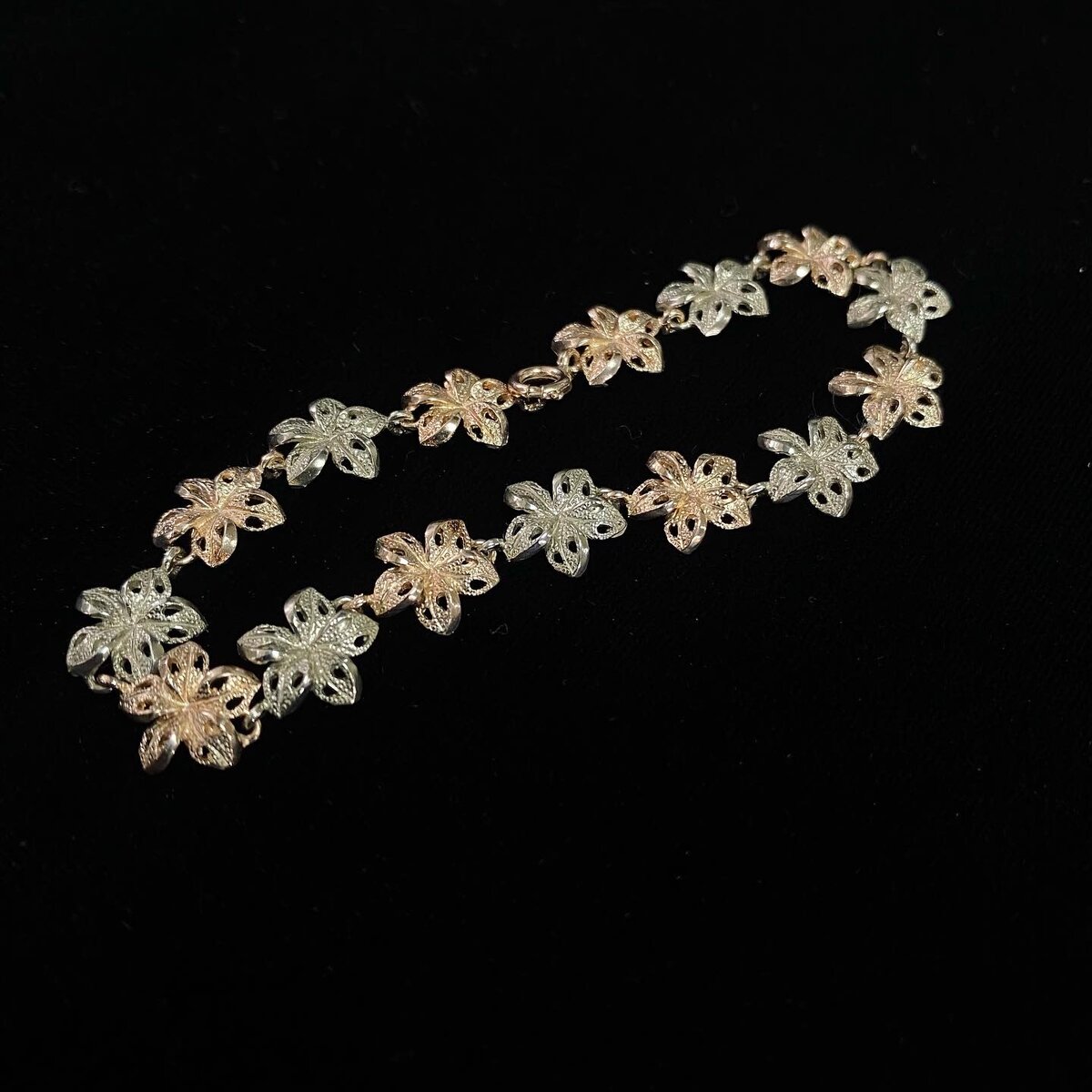 Браслет выполнен в золоте 585 пробы, в белом и красном цвете, вес изделия 8,14 гр, стоимость 31 т. р. прекрасно впишется на нежную женскую ручку, дополнит образ и заставит привлечь внимание окружающих.