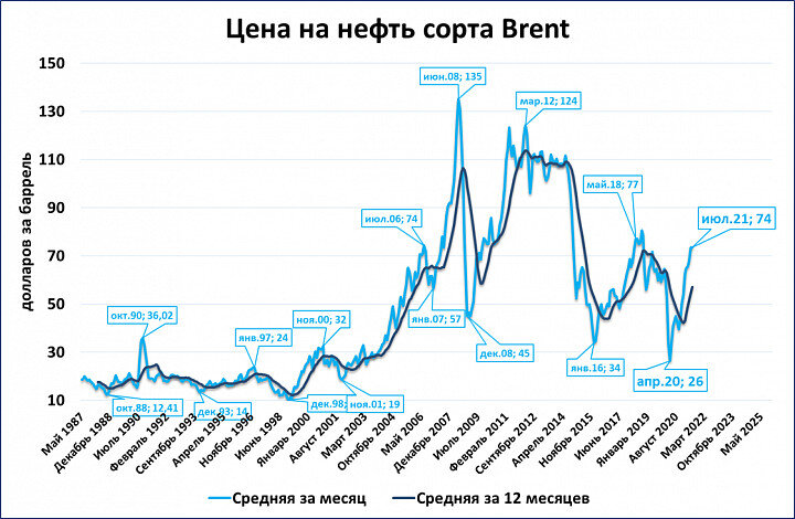 Среднемесячные цены на нефть сорта Брент в июле составили 74 доллара за баррель (выше, чем большую часть периода 1999-2008). Это на 70% выше, чем в июле прошлого года (на темпы роста тоже жаловаться не приходится). Такая конъюнктура на мировом рынке создаёт благоприятные условия для эффективных действий ЦБ и быстрого роста экономики. Но ЦБ сейчас действует неэффективно. Когда он действовал правильно, то даже неблагоприятная конъюнктура мирового рынка нефти не могла помешать росту ВВП (см. 2001-2002 годы). P.S. Ориентироваться в моих статьях, заметках и видео удобно через НАВИГАТОР Раньше всего материалы публикуются в Дзен и Телеграм Телеграм : https://t.me/m2econ Дзен : https://zen.yandex.ru/m2econ Подписывайтесь! Буду благодарен вам за лайки и комментарии