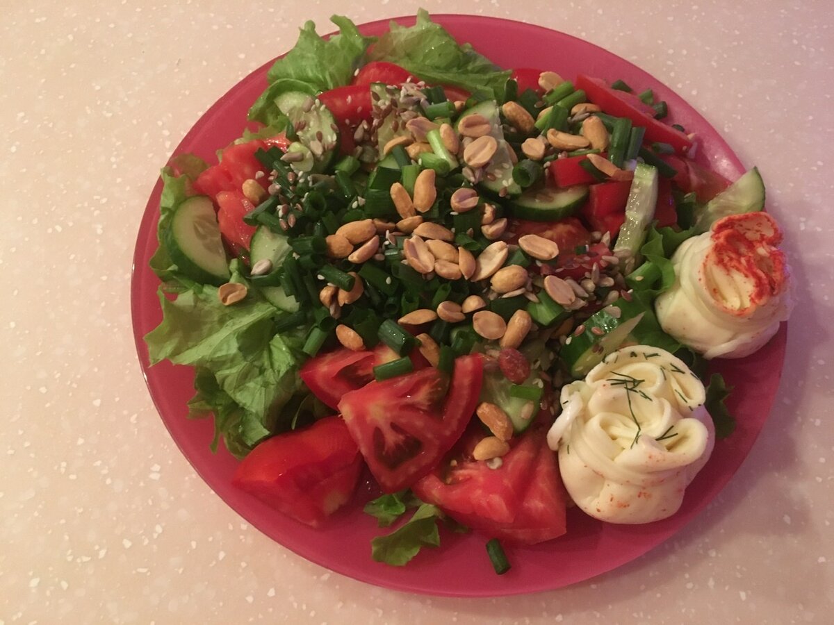 Я с юности придерживаюсь низко углеводной диеты (без фанатизма, крупы тоже люблю), поэтому периодически для себя ищу что-то новенькое Не хотите пропускать новые посты? подпишитесь на телеграм канал Ссылка на канал 🎀🎀🎀🎀🎀🎀🎀🎀🎀🎀🎀🎀🎀🎀🎀🎀. Сегодня в продуктовой популярной сети, первый раз увидела (может, раньше не замечала) - "Сырные хинкали", марки "Сыроварня". Взяла попробовать, что за зверь. То есть это вместо теста - сырная оболочка, внутри рикотта со специями. . Мне решили тут же помочь с ужином, мы вымыли и порвали салат... вымыли и порезали помидор и половинку огурца... помыли и порезали зеленый лук так как я полу-вегарианка, все мои салаты не обходятся без орехов и семян (это личный таракан). и открыли упаковку. В наборе оказалось четыре небольших узелочка. Два с паприкой, два с укропом. Вердикт: если разрезать - симпатично, но очень соленый, то есть как раз с овощами без всяких специй пойдет. "Тесто" очень напоминает сулугуни, рикотта тоже соленая. Вердикт: с салато