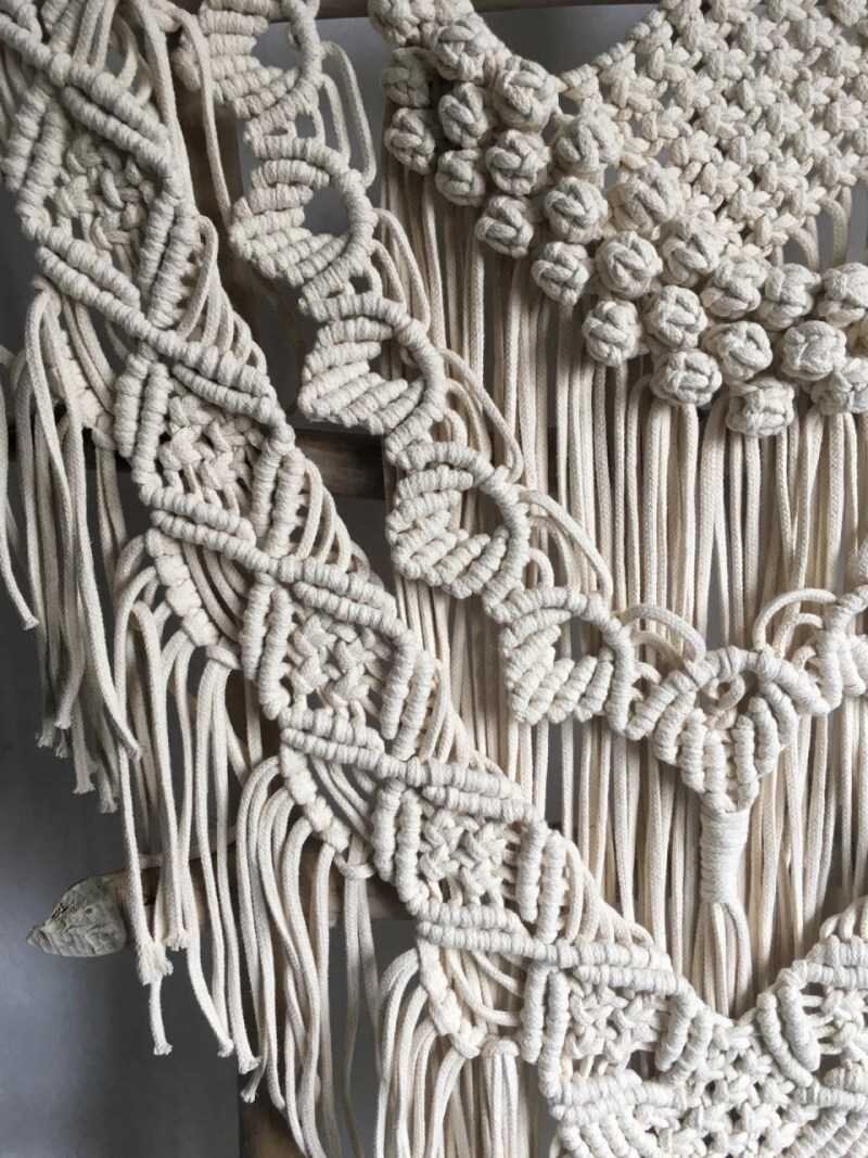Интерес заниматься макраме у советских рукодельниц пришелся на на конец 70-х — начало 80-х. Макраме начали увлекаться практически в каждом доме. Вывязывая воротнички для вечерних и повседневных платьев, школьной формы, поясков,сумок, авосек и перерастая в масштабные изделия, такие как панно и покрывало. Особенно популярны были вязаные кашпо. В какое учреждение ты бы не зашёл, и дома у друзей и знакомых, тебя встречали вазоны, висящие на окне в кашпо из лохматого шпагата. Изделия плели из бельевых веревок, шпагатов, тесьмы. Стали открываться кружки и курсы по обучения технике вязания макраме, где за несколько месяцев можно было овладеть этим искусством. Много продавалось журналов, где описаны методы и приёмы плетения изделий в технике макраме. Современное макраме На сегодня макраме входит в раздел самых топовых видов рукоделия. Современные рукодельницы по‑прежнему делают кашпо, покрывала, абажуры, занавеси для окон или дверных проёмов, чехлы для декоративных подушек, ширмы, коврик