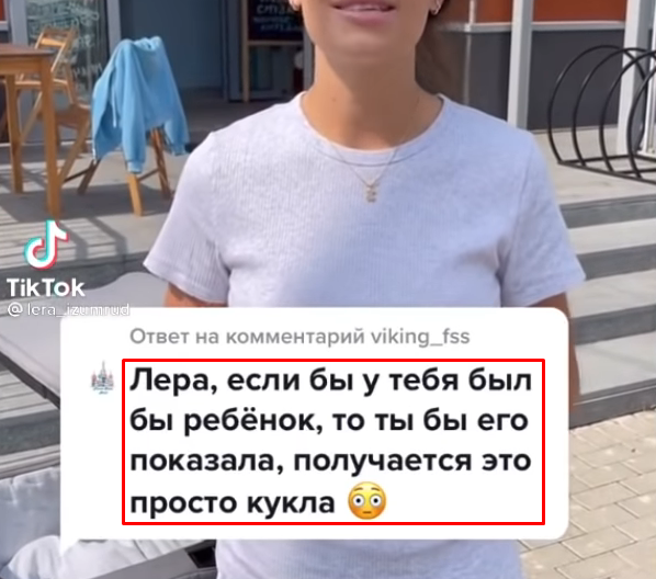 9 мая Лера родила сына и до этого дня вообще не показывала его лицо. Отсюда пошли слухи о том, что ребёнок в пелёнке на самом деле кукла и тиктокершу начали обвинять в хайпе. На что Лера ответила:
