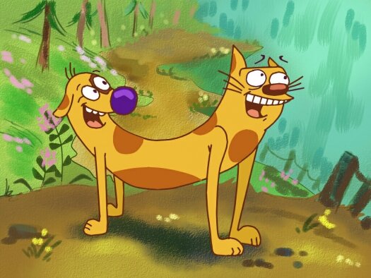 Наверняка вы все в детстве смотрели увлекательный мультсериал, шедший на канале "Никелодеон" о веселых похождениях желто-рыжего двухголового четвероногого, напоминающего "Тяни-Толкая" из сказке о докторе Дулиттле. Анимационный психоделический сериал был создан сценаристом Питером Хэннаном и наполнен абсурдными, а порой и даже жутковатыми сценами. Считается, что кошки и собаки - непримиримые враги. Есть даже такая пословица: "живут, как кошка с собакой" - то бишь, ссорясь, ругаясь. Сценарист и продюсер пытался раскрыть в мультсериале тему притяжения противоположностей. Но скажите мне: не посещал ли вас вопрос «как появимся котопес?» О реальных биологических родителях этого зверя не сказано ничего, однако в эпизоде "Великая родительская тайна" выясняется, что матерью КотоПса был снежный человек, а отцом - лягушка. И что из-за дразнилки Клиффа на "Дне Родителей" в Нирбурге Псу приходит в голову мысль найти свою семью, чтоб доказать, что главарь банды Грязнуль неправ. Но обо всем по поряд