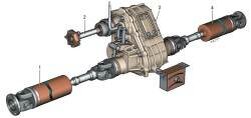 1. Отверните четыре самоконтрящиеся гайки крепления шарнира равных угловых скоростей (ШРУС) к фланцу ведущего вала раздаточной коробки.