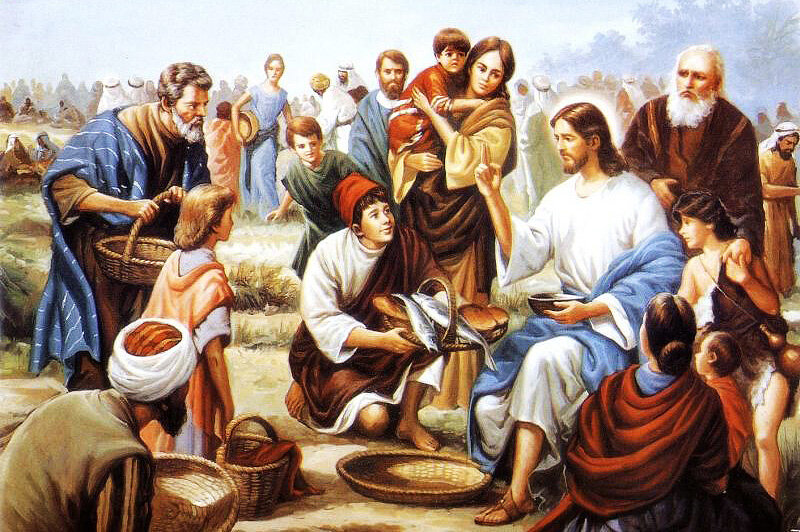 Сегодня на литургии Церковь вспоминает эпизод из Евангелия от Матфея о насыщении 5.000 человек пятью хлебами. «И, выйдя, Иисус увидел множество людей и сжалился над ними, и исцелил больных их. Когда же настал вечер, приступили к Нему ученики Его и сказали: место здесь пустынное и время уже позднее; отпусти народ, чтобы они пошли в селения и купили себе пищи. Но Иисус сказал им: не нужно им идти, вы дайте им есть. Они же говорят Ему: у нас здесь только пять хлебов и две рыбы. Он сказал: принесите их Мне сюда. И велел народу возлечь на траву и, взяв пять хлебов и две рыбы, воззрел на небо, благословил и, преломив, дал хлебы ученикам, а ученики народу. И ели все и насытились; и набрали оставшихся кусков двенадцать коробов полных; а евших было около пяти тысяч человек, кроме женщин и детей. И тотчас понудил Иисус учеников Своих войти в лодку и отправиться прежде Его на другую сторону, пока Он отпустит народ». От Матфея 14:14-22. Это было чудом Господним! Одним хлебом невозможно накормить