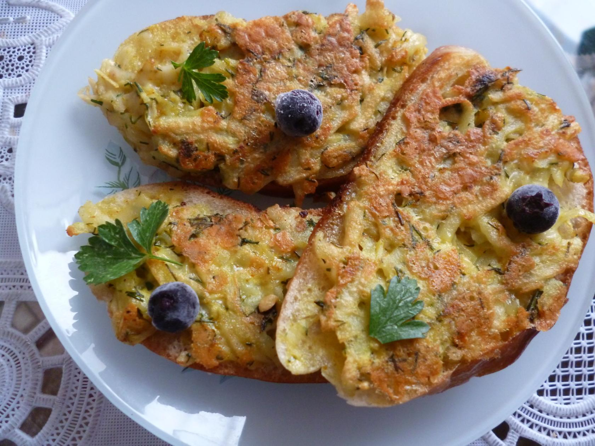 Ингредиенты: батон- 1 шт; яйцо-3 шт; картофель-3 шт; сыр-200 г; чеснок, соль, специи- по вкусу;укроп-1 столовая ложка; зелень петрушки- для оформления; растительное масло.