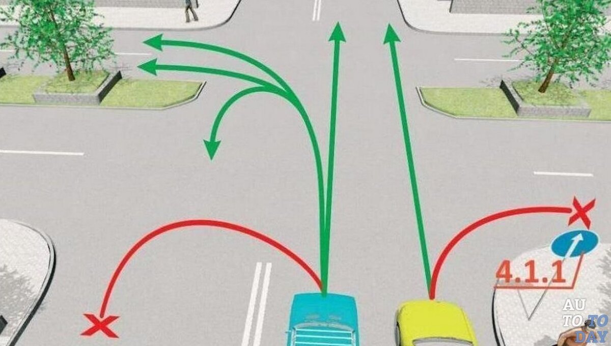 Представьте ситуацию, при которой вы пропустили свой поворот и теперь надо развернуться. Впереди перекресток, перед которым стоит знак, запрещающий разворот, за ним почти сразу пешеходный переход, а дальше – остановка общественного транспорта. Может ли водитель развернуться где-то в этом месте? По одному из четырех вариантов: Ситуация достаточно нетривиальная, поэтому иногда даже достаточно опытные водители дают неправильный ответ. А по статистике почти половина респондентов ошибается. Так какой же правильный ответ? Разбираем ситуацию. Есть правильный ответ? Давайте начнем разбирать ситуацию по порядку. И сразу рассмотрим два первых варианта. На них оказывает непосредственное воздействие упомянутый ранее знак, который сигнализирует водителю любого транспортного средства, что разворот запрещен. Следовательно, первые два варианта можно исключить из числа правильных ответов. Смотрим дальше. И обращаем внимание на пешеходный переход. Можно ли на нем делать разворот? Конечно же нет, так ка