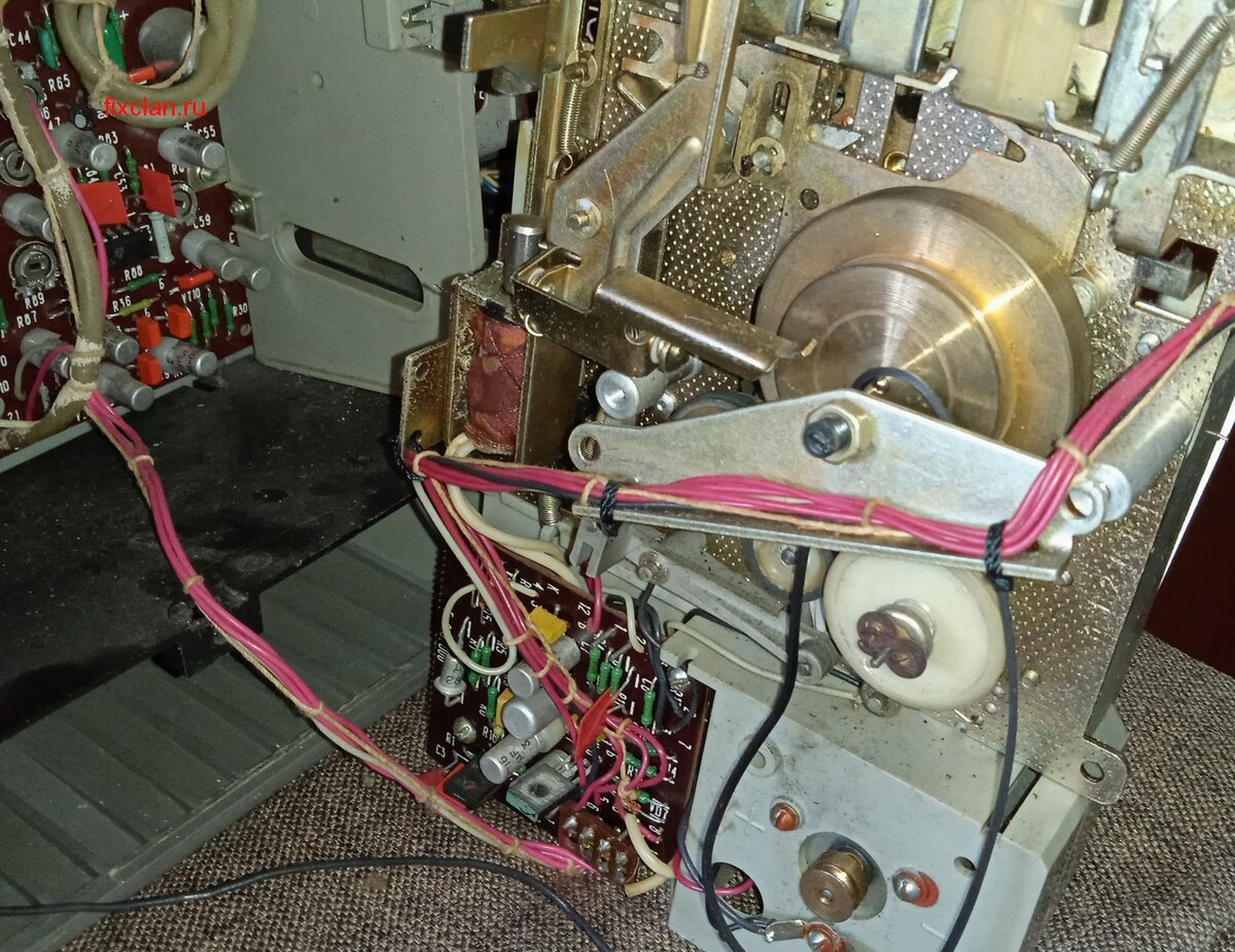 Продолжаю разбираться с магнитофоном. "Ореанда 203". За что не возьмусь в нём, всё требует ремонта, либо обслуживание. В этот раз вопрос встал с лентопротяжным механизмом. Изначально, воспроизведение кассеты дело было случая: могло крутить, а могло встать колом, при этом звук вращающегося мотора слышен. И если посчастливиться, то звук "польётся" с эффектом зернистости и "пьяный". Старый пассик вытянут в форму овала и начинает дубеть. Его замена слегка выровняла звук, но детонация осталась. По ощущениям вибрация происходит около 10 Гц, а это, как я думал, может быть мотор или маховик. Осмотрел (на предмет грязи и мусора) и вычистил все канавки, смазал вал маховика, но результата это не принесло. Есть подозрение на электромотор, а он здесь довольно большой, с отдельной схемой регулировки/стабилизации. Найти такой на барахолке можно (естественно не новый), но будет ли он исправным - шанс 50/50, да и обойдется не дешево. Осложняется всё тем, что мне не чем его заменить для проверки, чтобы