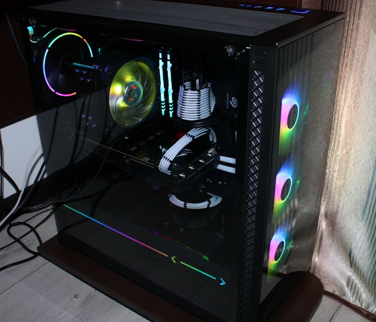 Добротный корпус с четырьмя 120 мм вентиляторами в комплекте. Передняя и боковая стенки, выполнены из затемнённого калёного стекла. Возможность установки водянки. То что нужно чтоб расположить наше железо.