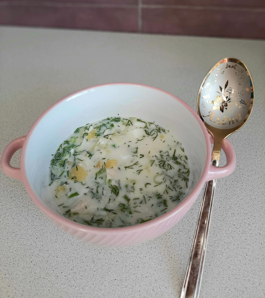 Самое летнее блюдо - окрошка! Предлагаю свой рецепт. 📌Ингредиенты: 5 яиц 5 средних картофелин Филе одной куриной грудки 0,5 дайкона 1 большой огурец Пучок зеленого лука Пучок укропа 300 гр.сметаны Соль, черный перец по вкусу 1 ст.ложка уксуса Вода 📌 Приготовление: Картофель варю очищеный Дайкон, в отличие от редьки, не содержит горчичных масел; в отличие от редиса, обладает умеренным ароматом. Огурец всегда тру на терке, так огурцы более сочные и не плавт отдельно сверху Вместо колбасы я добавляю куриное филе, так мне кажется вкуснее Перец я добавляю для того, чтобы окрошка была более резкая и слегка остренький вкус Сметану всегда добавляю до того, как добавлю жидкость и хорошо перемешиваю овощи, так она смешивается и потом не плавает сверху Уксуса в среднем добавляю 1 столовую ложку на 5 литров окрошки Окрошка готова, приятного аппетита! 😉 Надеюсь мой рецепт вам понравится и вы его оцените👍