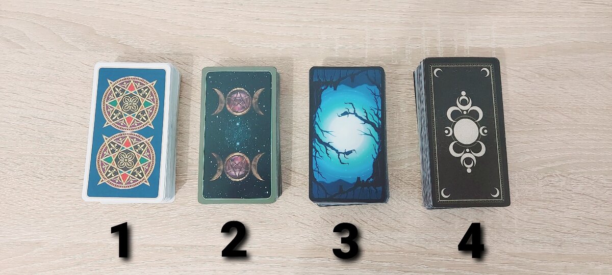 Перед вами четыре колоды. Выберете ту, на которую укажет ваша интуиция.