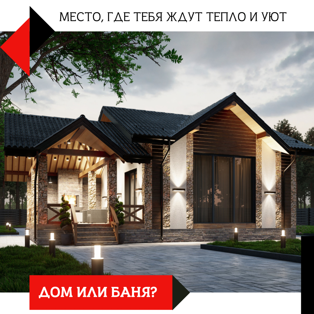 Как думаете на первый взгляд — на фото проект дома или бани? ⠀ Перед Вами проект ДОМ-БАНИ «ЗАПОВЕДНИК» 💫 ⠀ Когда люди думают о бане, то чаще всего имеют в виду строение из бревен или бруса, и это нормально и привычно. ⠀ Многие наши заказчики тоже раньше считали, что баня должна быть деревянной. Однако, среди них есть и те, кто знает, что этот миф основан не на реальных фактах, а, скорее, является неким стереотипом. ⠀ На протяжении долгого времени (в отсутствие других более совершенных строительных материалов) в деревнях, все строили из дерева. Поэтому и сложилось такое представление у людей, что баня должна быть деревянной. ⠀ Однако, если обратиться к фактам, то оказывается что в бане мы любим не только пар и жар, но нам также важен запах дерева и особый микроклимат! ⠀ Если мы посмотрим на устройство самой парилки, то поймём, что её стены обшиты сначала несколькими слоями материалов совсем не из дерева. Это гидроизоляция, теплоизоляция и пароизоляция и только потом вагонкой из дерев