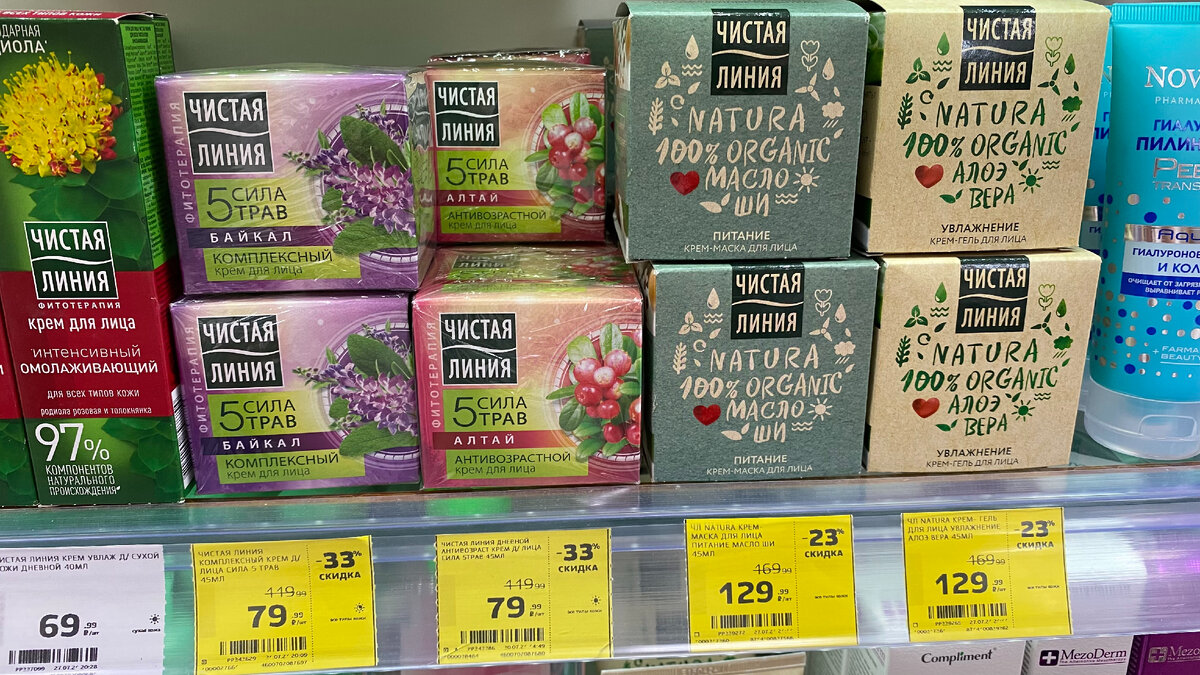 Сегодня я была в Магнит Косметике и увидела там новые кремы от фирмы "Чистая Линия". Всего их было 4 вида. Два из линейки "Сила 5 трав", полная стоимость которых составляет 119 рублей, а два из линейки "Natura 100% Organic", полная стоимость которых равна 169 рублей. Давайте поподробнее на них посмотрим и ознакомимся с составами. Вот такой комплексный крем для лица с силой 5 байкальских трав. Вроде бы не сказано, что он подходит только для возрастной кожи, поэтому пользоваться им могут даже девушки. Но обратите внимание, что он разработан для нормальной и комбинированной кожи! Здесь у нас байкальский шлемник (защищает кожу от вредных внешних воздействий и повышает упругость кожи), жимолость (обладает антиоксидантными свойствами), таволга (восстанавливает эластичность кожи), толокнянка (выравнивает цвет лица, способствует уменьшению пигментных пятен) и медуница (обладает омолаживающими свойствами). Объем крема составляет 45 миллилитров. Производитель признается, что растения, входящие