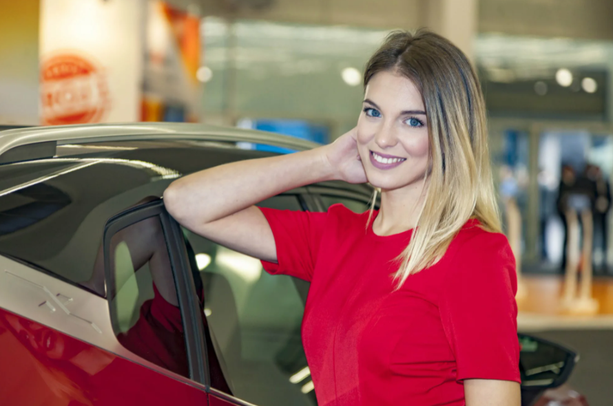 Девушка подошла к посетителю, который стоял около внедорожника. Начала с ним беседу, ответила на все вопросы и предложила тот же автомобиль взять в более лучшей комплектации. Мужчине понравилось обслуживание и он решился брать себе авто.