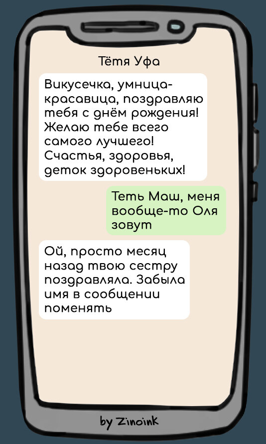 Некоторые родственники способны даже в поздравление вложить шарм, который свойственен только им. Если в твоей семье есть авторитарные персонажи, то в какой-то момент ты можешь получить от них поздравление с элементами шантажа.