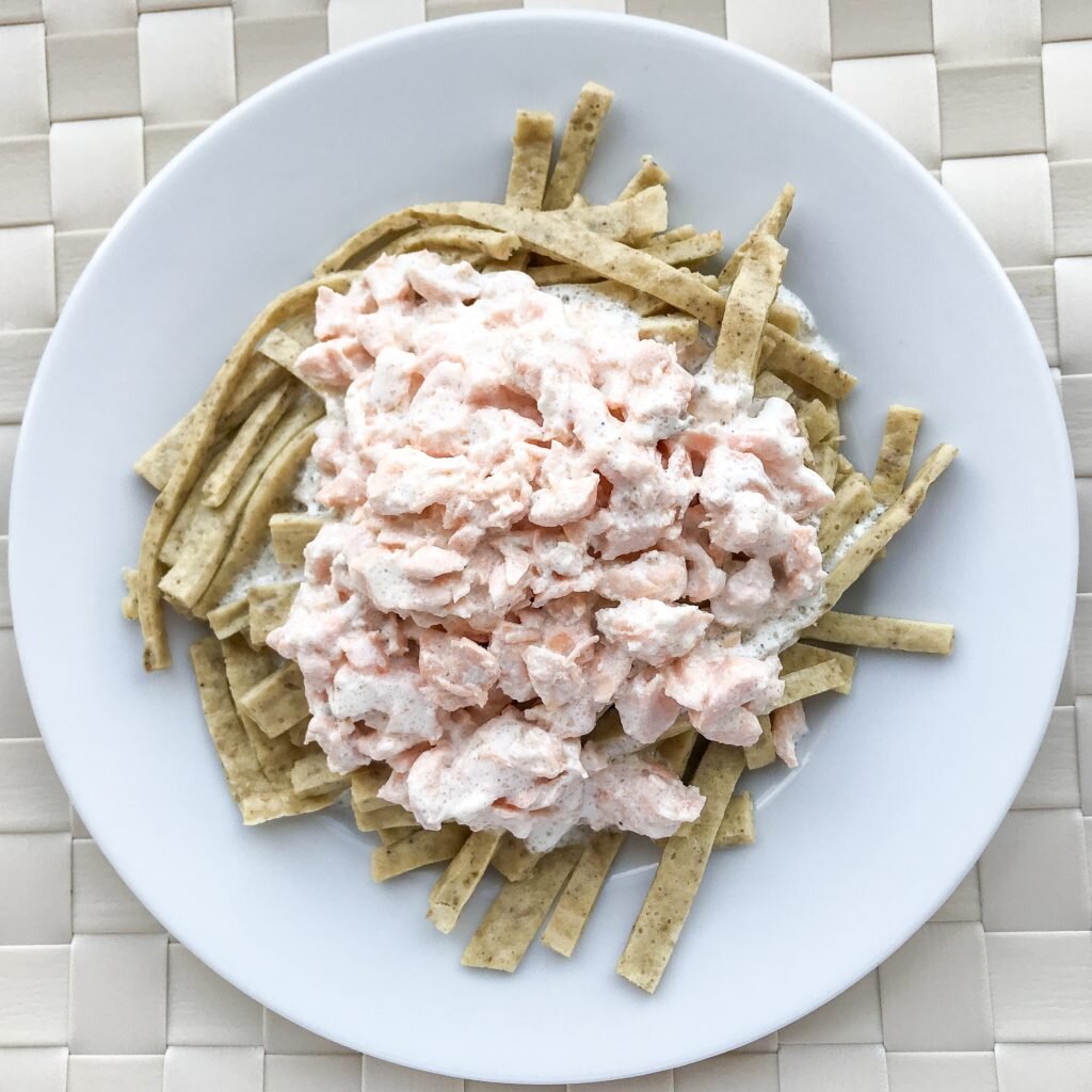 Кето-паста Ингредиенты: Паста 🔹 4 яйца 🔹 150 г творожного сыра 🔹 2 ст л льняной муки 🔹 Соль 🔹 Соус 🔹 500 г красной рыбы 🔹 200 г сливок 20% 🔹 Соль 🔹 Перец 🔹 Чеснок Приготовление: 1 Разогрейте духовку до 150º С. 2 Взбейте 4 яйца, творожный сыр и 1/2 чайной ложки соли до однородной массы. 3 Добавьте 2 столовых ложки муки и хорошо перемешайте. Дайте тесту настояться 2-3 минуты. 4 На противень, покрытый пергаментной бумагой, выложите получившуюся массу, хорошо разровняв ее. У нас получилось разровнять до 5 мм. Толщина зависит от консистенции теста и размера противня. В духовку на 12-15 минут. 5 Достаньте из духовки и дайте остыть. Пока можно заняться соусом. 6 Порежьте свежую рыбу на маленькие кусочки. 7 На хорошо смазанной маслом (оливковым или кокосовым) сковороде, на быстром огне обжарьте рыбу в течение пары минут. 8 Залейте сливками, доведите до кипения и снизьте огонь до минимума. Посолите, поперчите, добавьте по вкусу чеснок. Через 10 минут можно снимать с плиты. 9 Возьмите