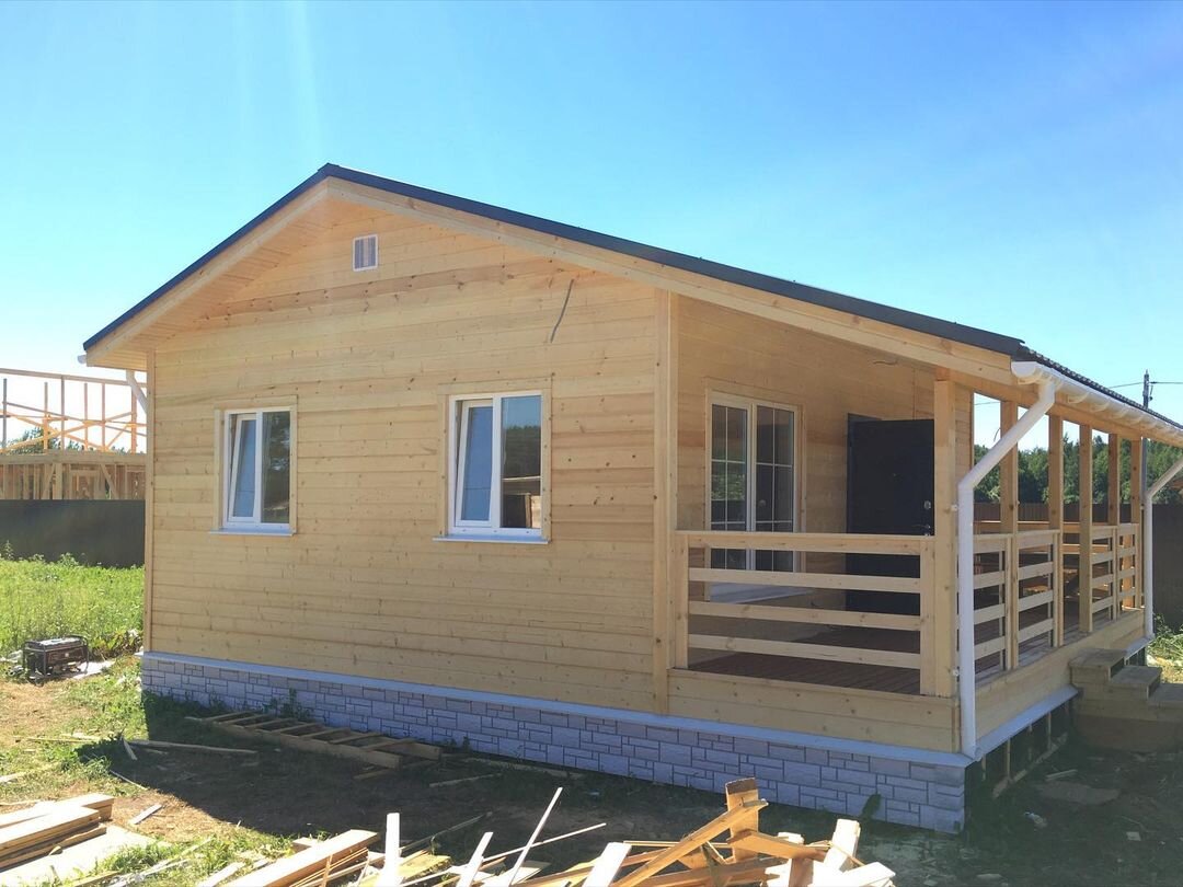 Еще одна семья стала обладателем своего теплого дома! Бригада СК "Свой теплый дом" завершила строительство каркасного одноэтажного дома в посёлке Лепсари. Приглашаем и вас посмотреть на результаты :) Дом построен по индивидуальному проекту Заказчика. Общие габариты - 8 на 8 метров. Это одноэтажный дом с большой террасой, двумя спальнями и кухней-гостиной. Но о планировке стоит рассказать подробнее. Кстати, если вы в процессе поиска проекта для своего загородного дома, загляните в наш каталог! Планировка Входная группа - 16-метровая терраса, которая протянулась на всю ширину дома. Вход на террасу и в дом расположены четко посередине, поэтому она делится на две зоны: одна - с окном из зоны гостиной и вторая - без окон, отлично подходящая для организации зоны отдыха. Входя в дом, попадаем в небольшой тамбур, далее - в небольшой холл, откуда можем попасть во все помещения дома. Прямо напротив входа располагается санузел - 4-метровое помещение с отдельным окном. В одной части дома размести