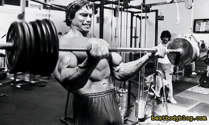 Думаю, что никто не сомневается в том, что Шварценеггер это один из сильнейших культуристов своего времени. Его результаты в великой тройке упражнений впечатляет, и по сей день, но не являются недостижимыми. Сейчас уже трудно удивить жимом лежа в 200кг., или приседаниями со штангой в 350килограмм. Куда охотнее люди смотрят и пытаются установить рекорды в подъемах на бицепс, чем в очередных тягах. Вот и у меня назрел вопрос, а каков был максимальный вес, который Арнольд поднимал на бицепс. Начнем с технической части и сразу сделаем оговорку. Шварценеггер поднимал на бицепс больше 100кг., но другой момент, как он это делал. Практически каждый, кто занимается в спортзале, знает правильную технику выполнения упражнения. Никаких рывков и забрасывания штанги на грудь, всё подконтрольно и методично. Но тогда и результат в килограммах будет отличаться, чем от технически верного исполнения упражнения. Скажем, вы работаете с весом в 35кг., но если пренебречь техникой исполнения, то закинете и 50
